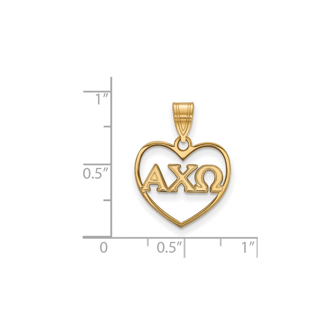 Sterling Silver Gold-plated LogoArt Alpha Chi Omega Sorority Greek Letters Heart Pendant