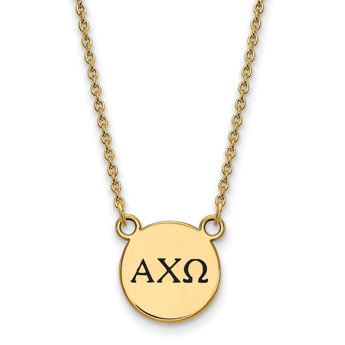 Sterling Silver Gold-plated LogoArt Alpha Chi Omega Sorority Greek Letters Small Black Enamel Pendant 18 inch Necklace