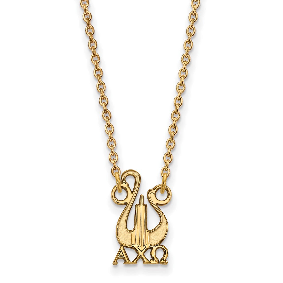 Sterling Silver Gold-plated LogoArt Alpha Chi Omega Sorority Symbol Small Pendant 18 inch Necklace