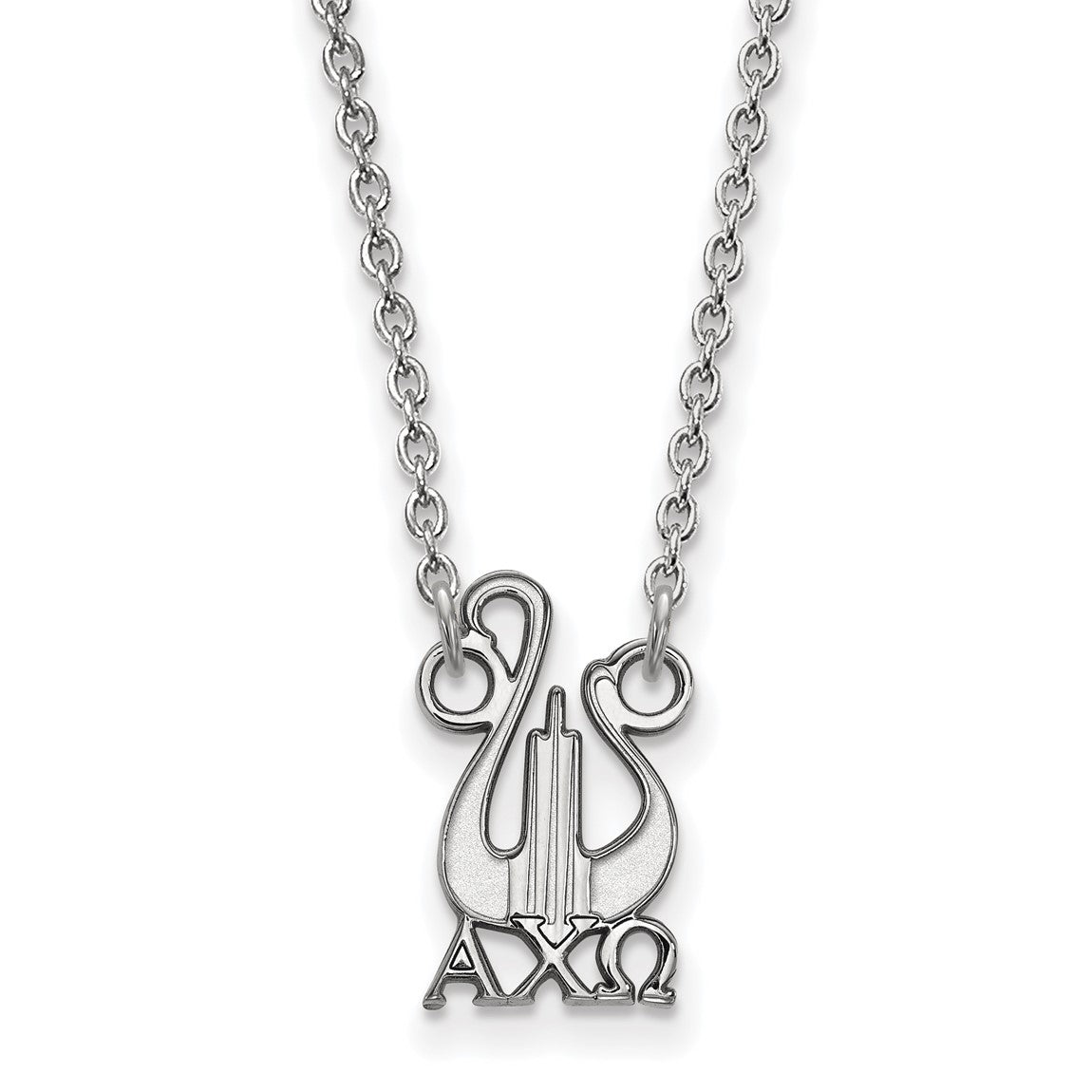 Sterling Silver Rhodium-plated LogoArt Alpha Chi Omega Sorority Symbol Small Pendant 18 inch Necklace