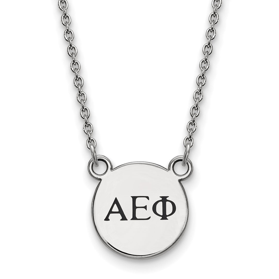 Sterling Silver Rhodium-plated LogoArt Alpha Epsilon Phi Sorority Greek Letters Extra Small Black Enamel Pendant 18 inch Necklace