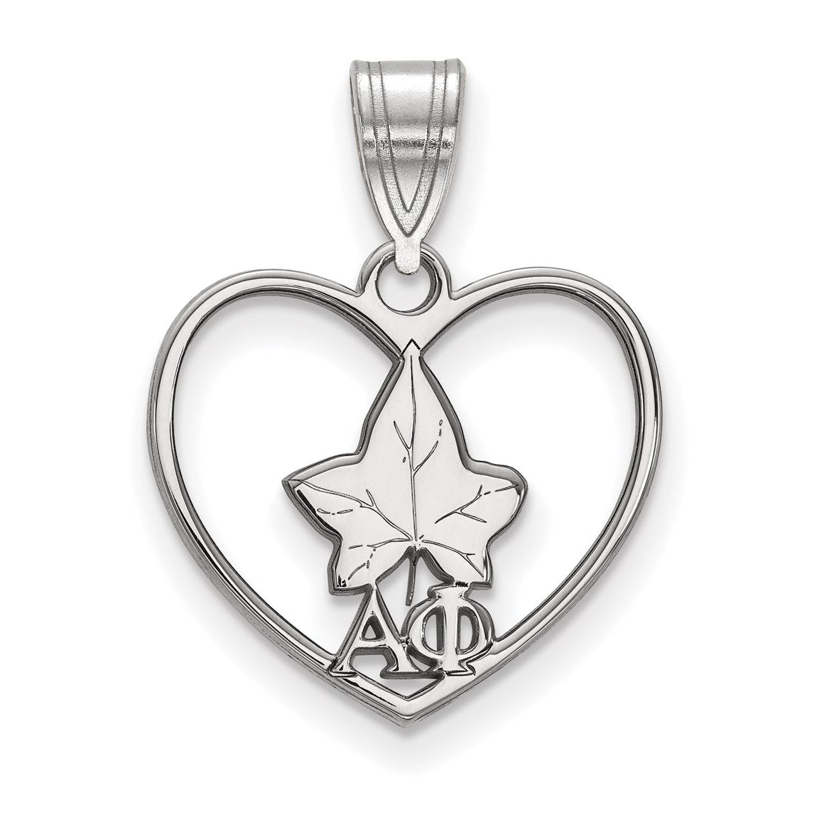 Sterling Silver Rhodium-plated LogoArt Alpha Phi Sorority Symbol Heart Pendant