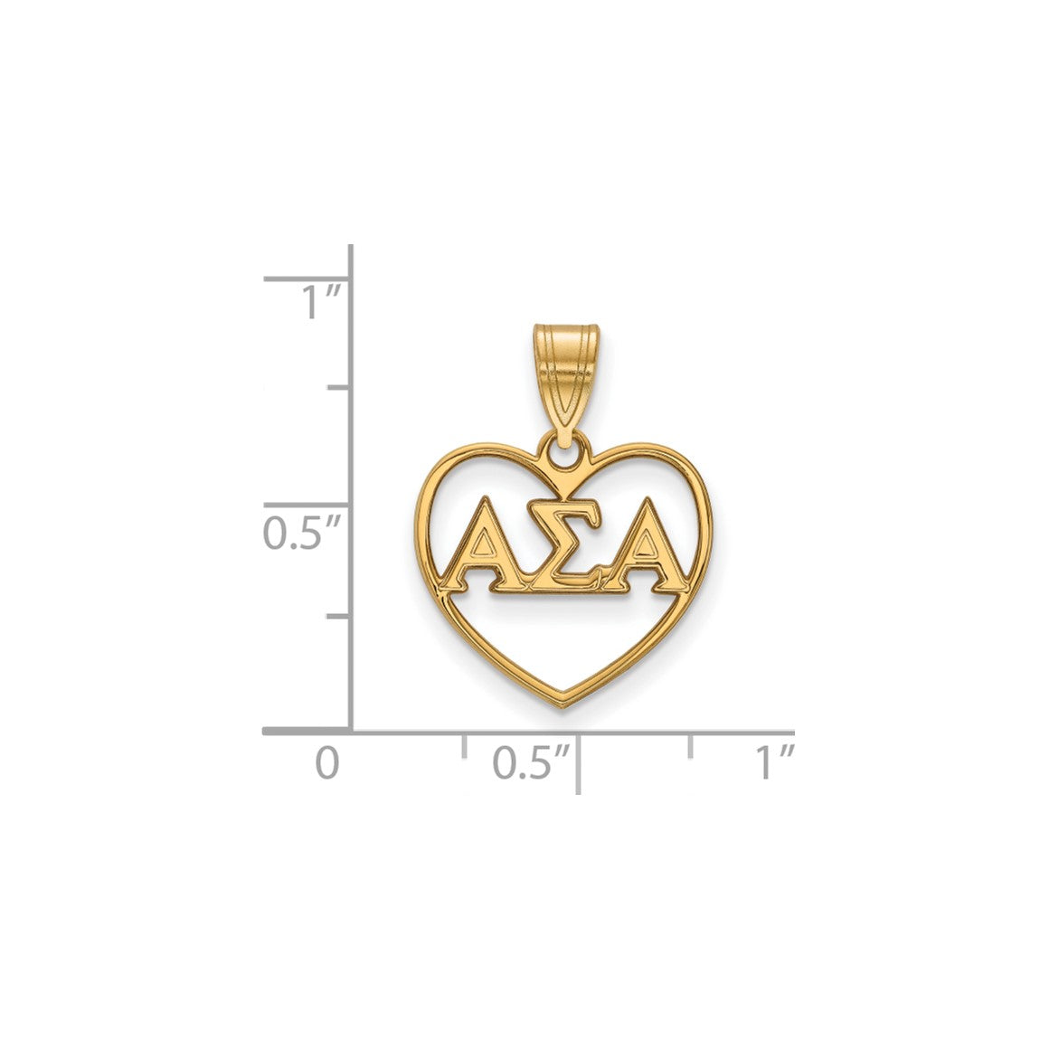 Sterling Silver Gold-plated LogoArt Alpha Sigma Alpha Sorority Greek Letters Heart Pendant