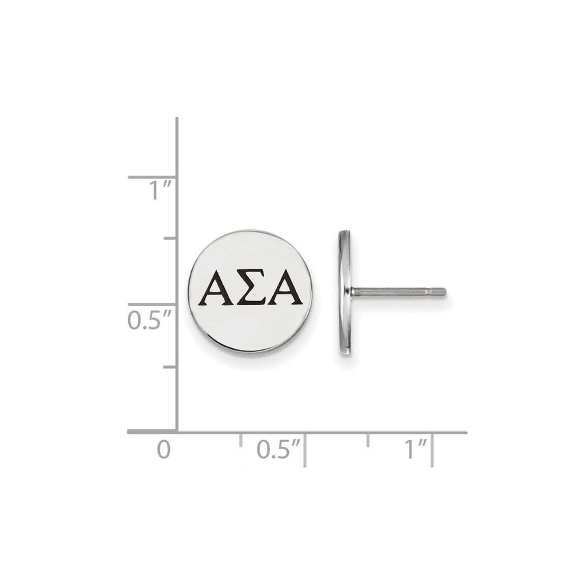 Sterling Silver Rhodium-plated LogoArt Alpha Sigma Alpha Sorority Greek Letters Black Enamel Post Earrings