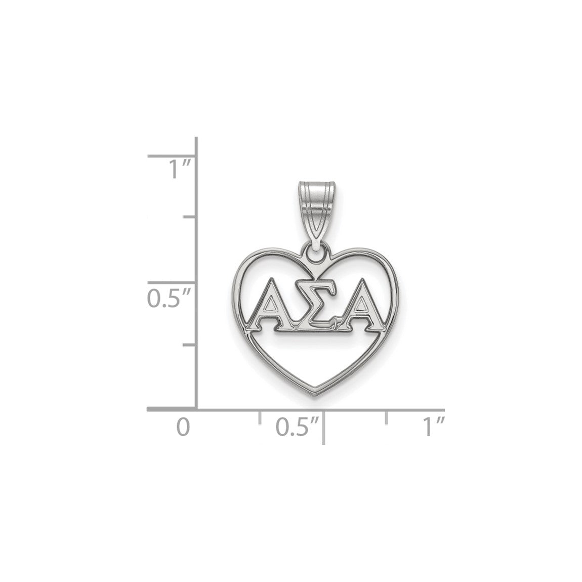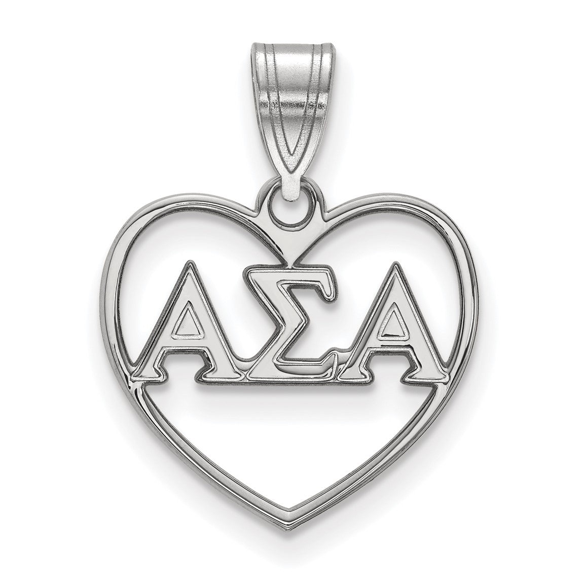 Sterling Silver Rhodium-plated LogoArt Alpha Sigma Alpha Sorority Greek Letters Heart Pendant