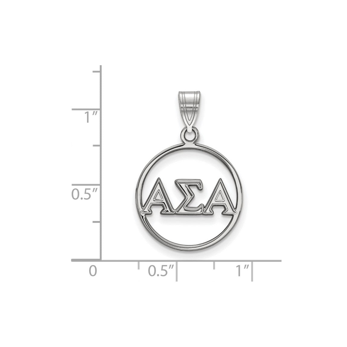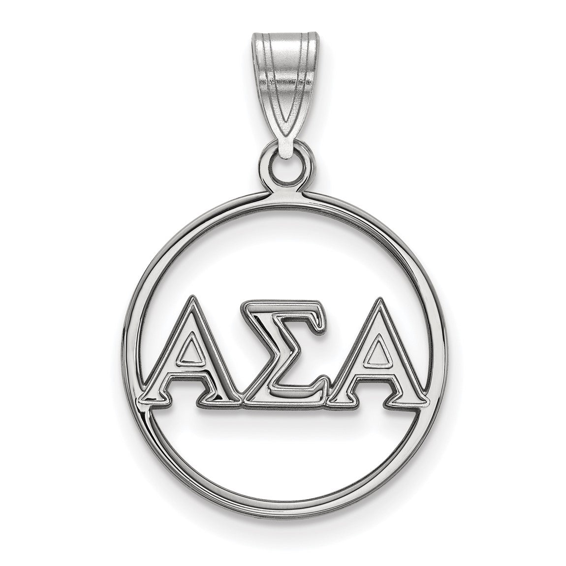 Sterling Silver Rhodium-plated LogoArt Alpha Sigma Alpha Sorority Greek Letters Small Circle Pendant