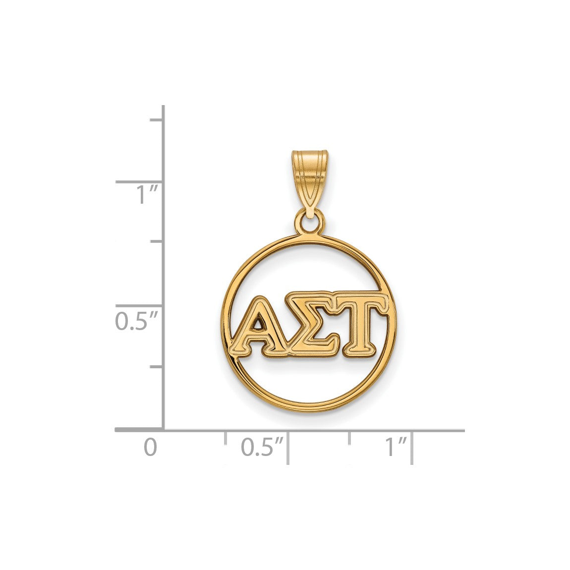 Sterling Silver Gold-plated LogoArt Alpha Sigma Tau Sorority Greek Letters Medium Circle Pendant