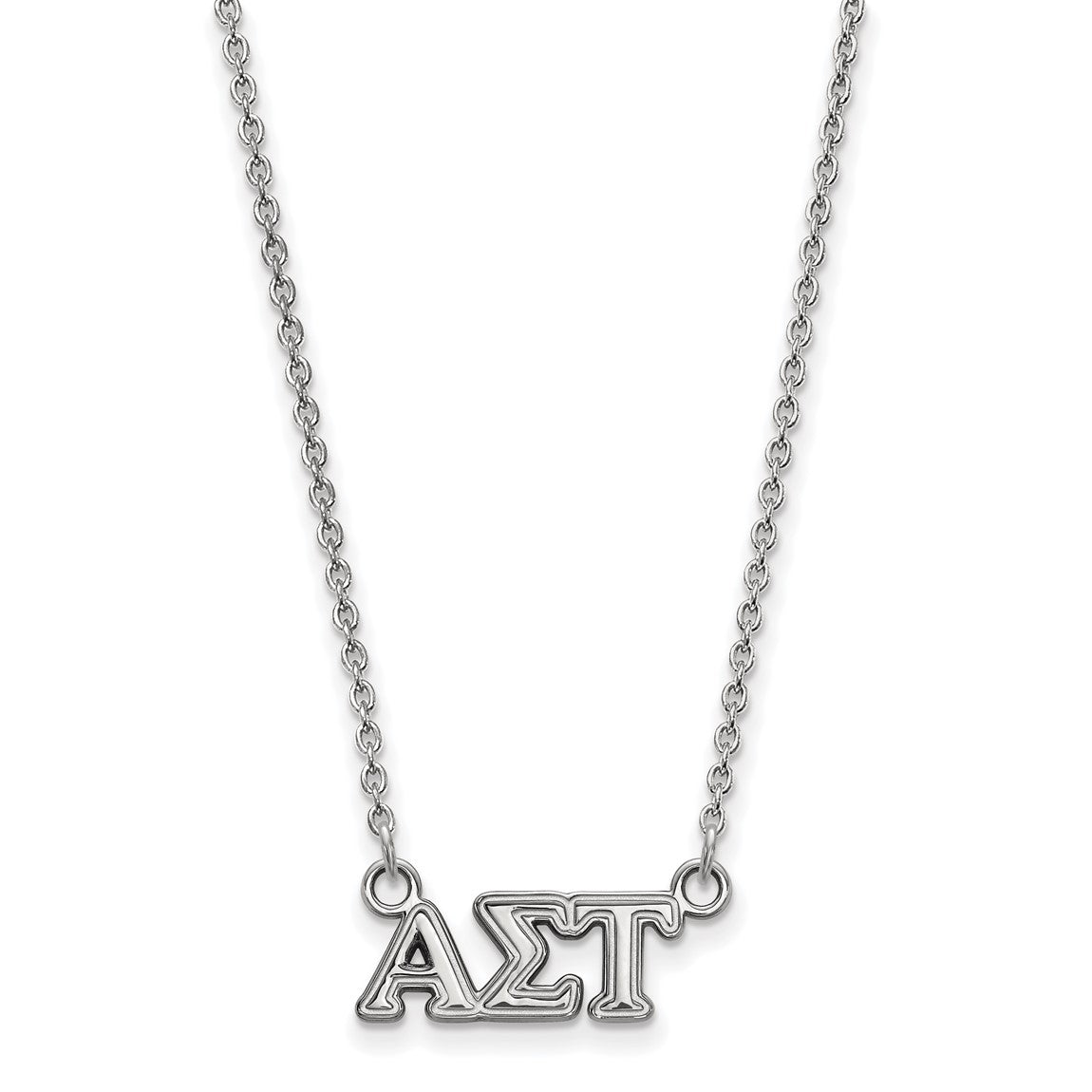 Sterling Silver Rhodium-plated LogoArt Alpha Sigma Tau Sorority Greek Letters Extra Small Pendant 18 inch Necklace