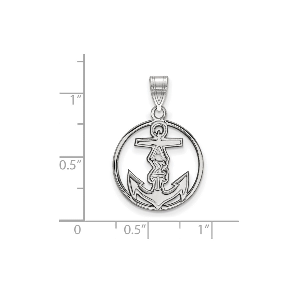Sterling Silver Rhodium-plated LogoArt Alpha Sigma Tau Sorority Symbol Medium Circle Pendant
