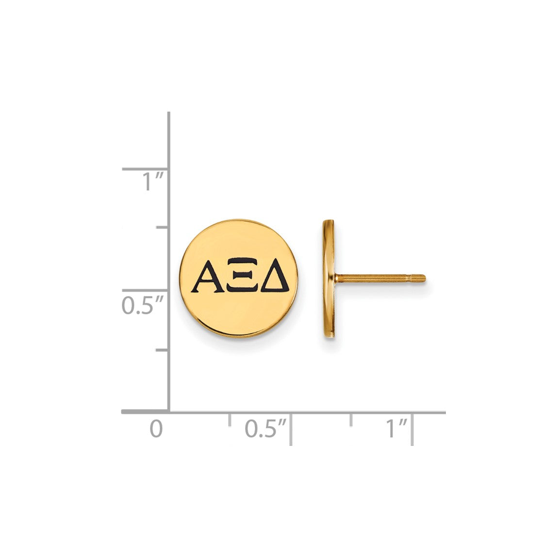 Sterling Silver Gold-plated LogoArt Alpha Xi Delta Sorority Greek Letters Black Enamel Post Earrings