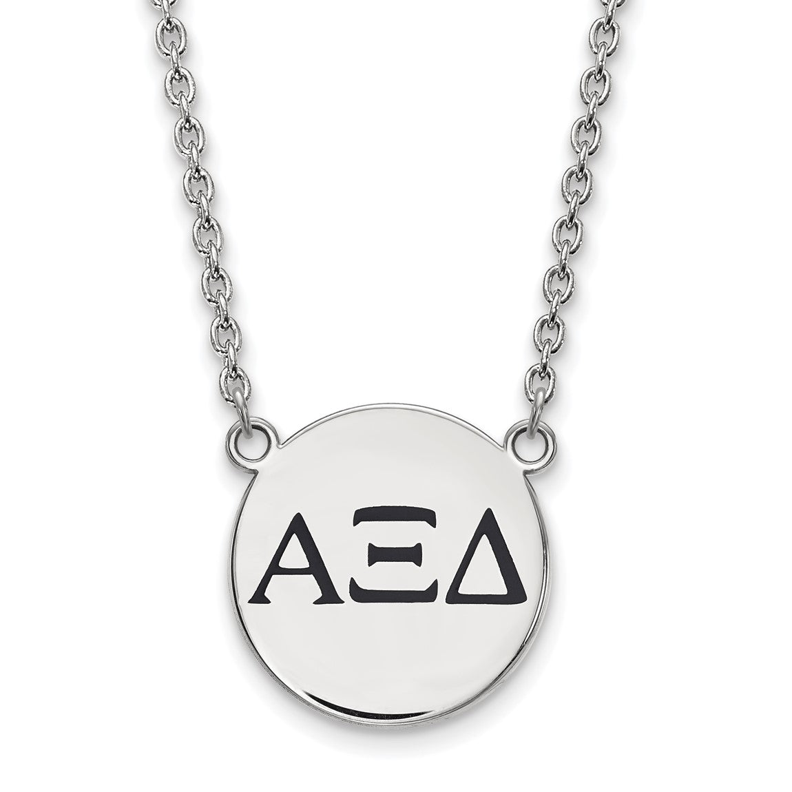 Sterling Silver Rhodium-plated LogoArt Alpha Xi Delta Sorority Greek Letters Large Black Enamel Pendant 18 inch Necklace