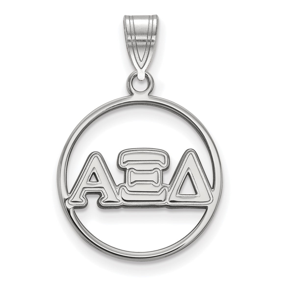 Sterling Silver Rhodium-plated LogoArt Alpha Xi Delta Sorority Greek Letters Medium Circle Pendant