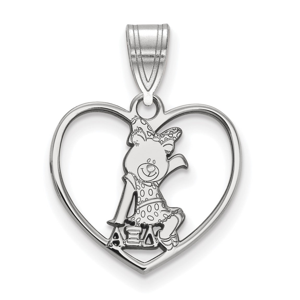 Sterling Silver Rhodium-plated LogoArt Alpha Xi Delta Sorority Symbol Heart Pendant