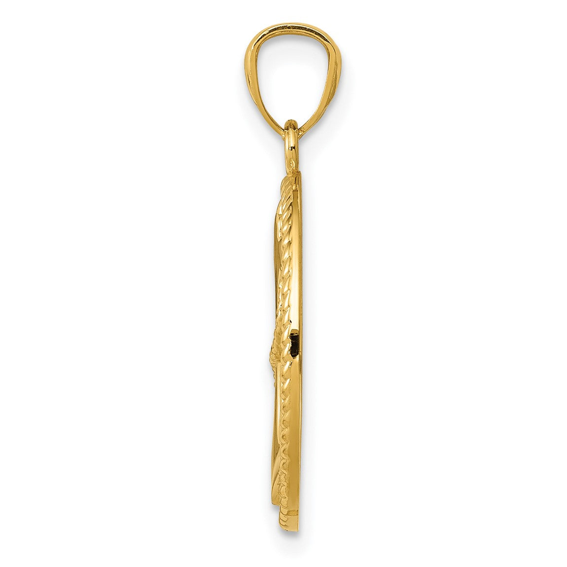14k Yellow Gold Polished Anchor w/Rope Oval Pendant