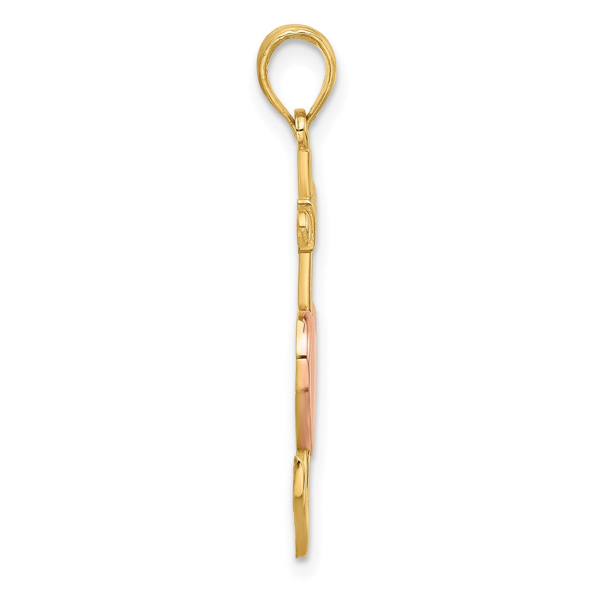 14K Yellow Gold w/Pink Rhodium-plating Fancy Anchor and Heart Charm