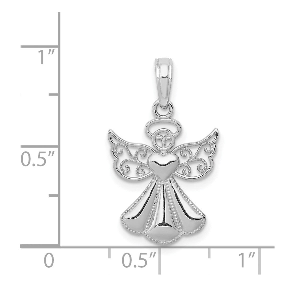 14k White Gold Polished and Textured Guardian Angel with Heart Pendant