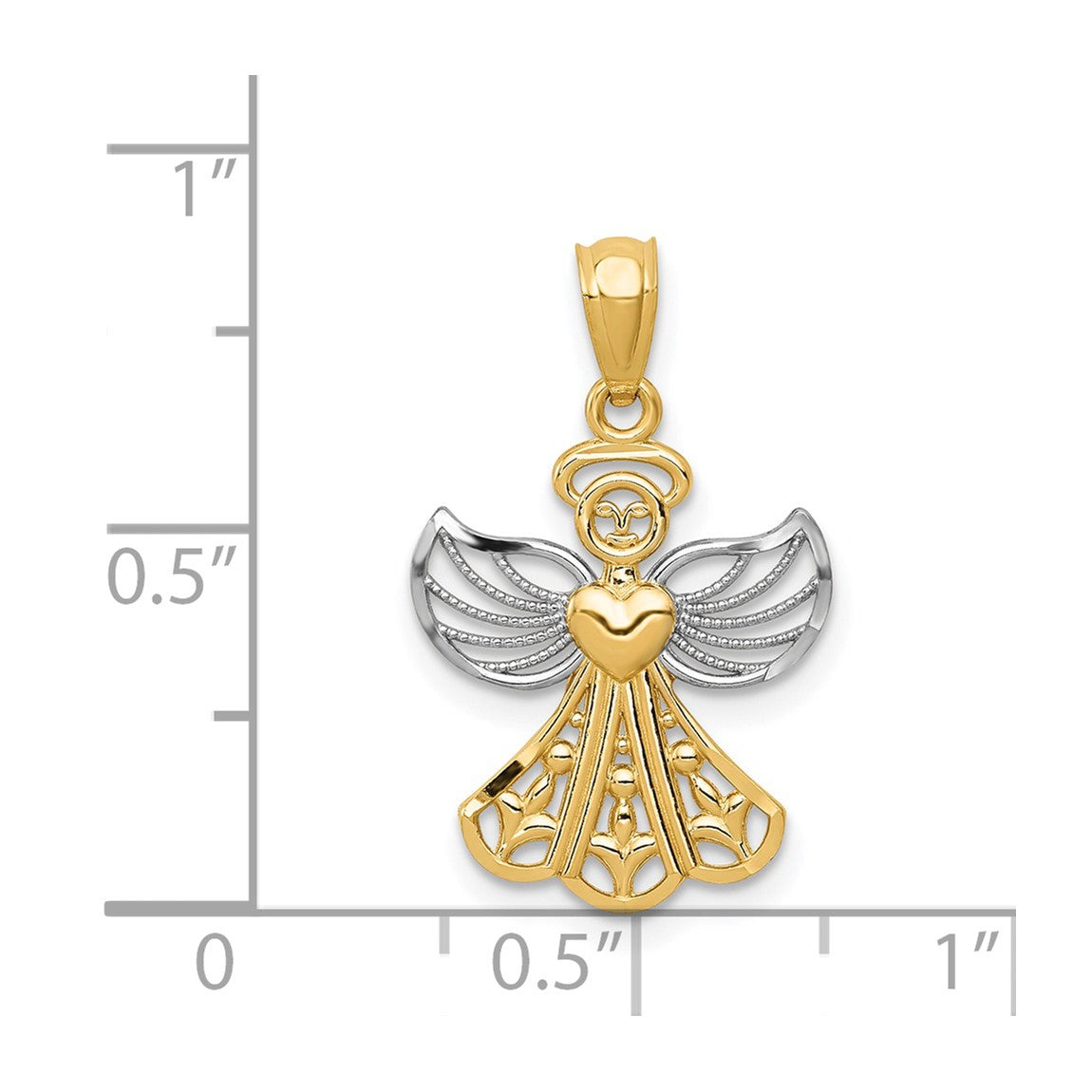 14k Yellow Gold and Rhodium Filigree Angel Pendant XR919