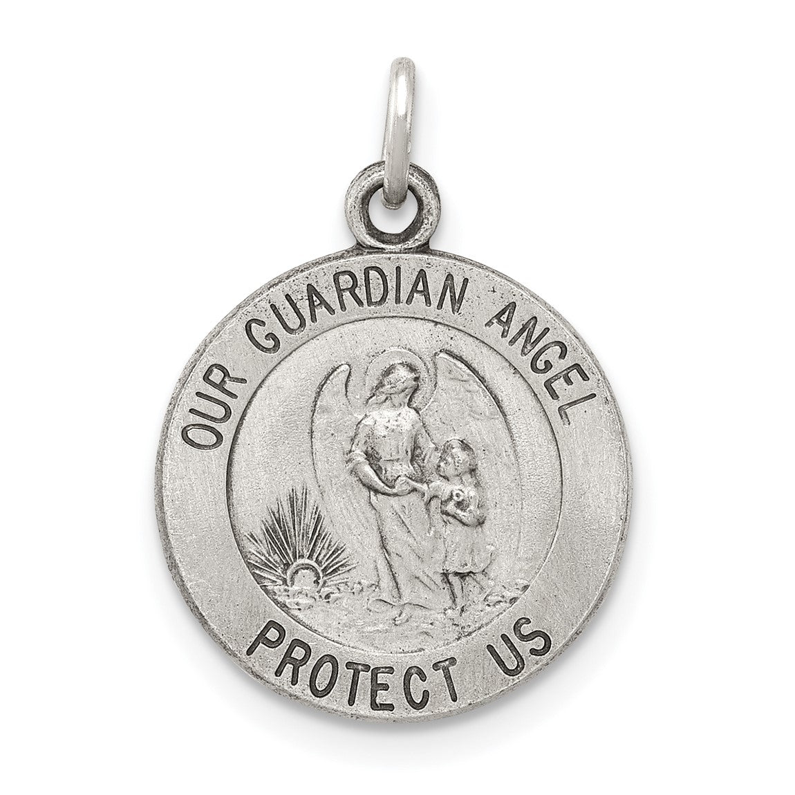 Sterling Silver Antiqued Guardian Angel Medal Pendant QC3625