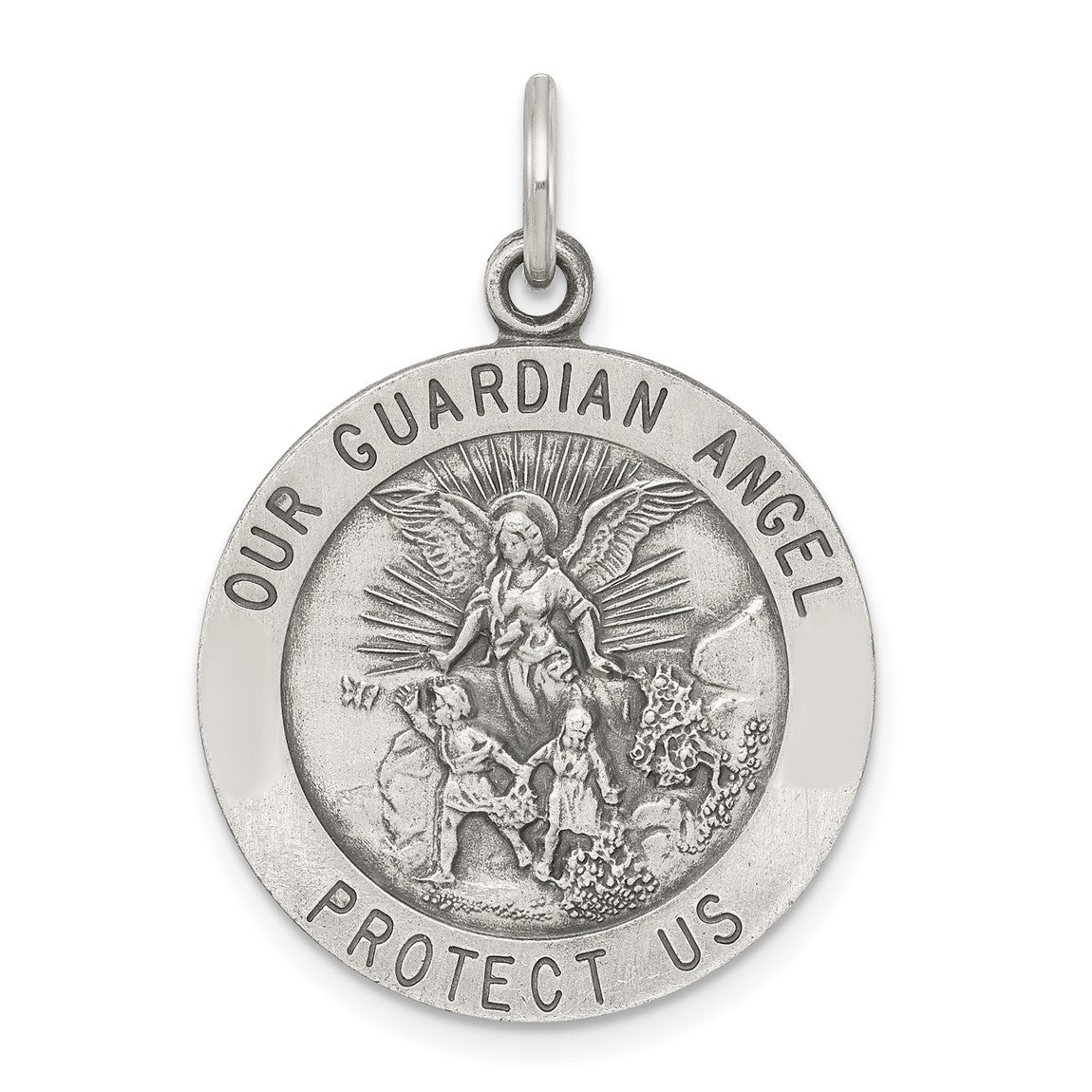 Sterling Silver Antiqued Guardian Angel Medal Pendant QC3627