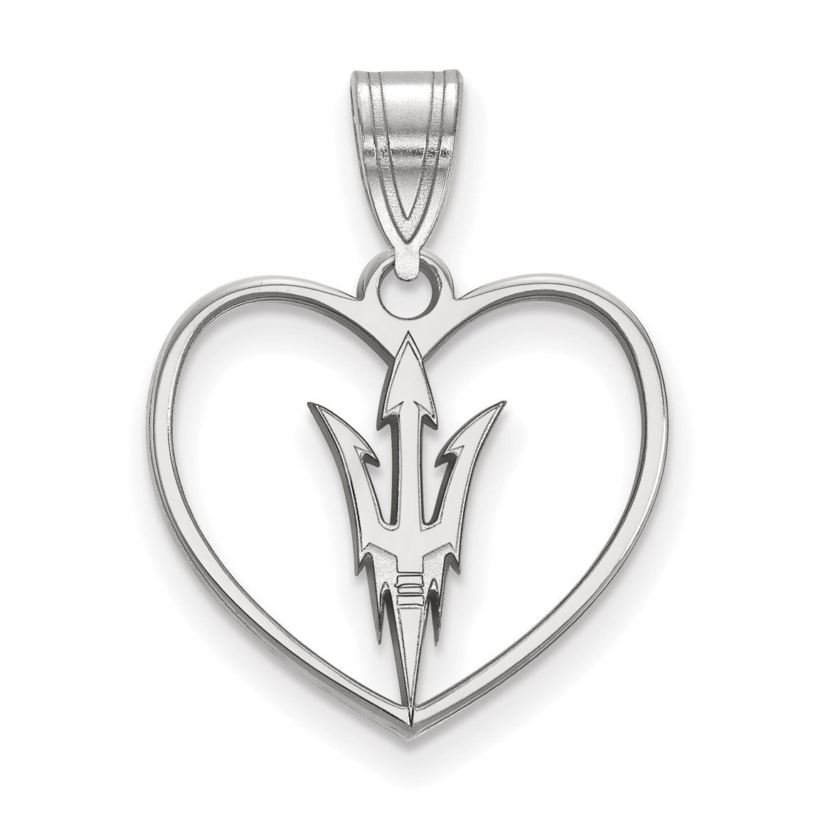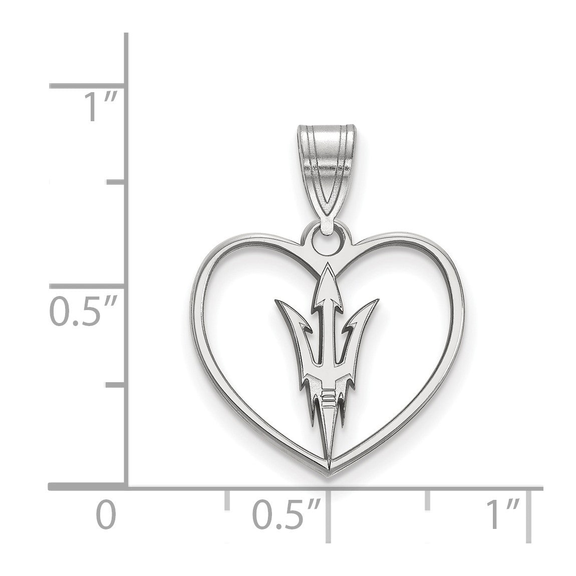 Sterling Silver Rhodium-plated LogoArt Arizona State University Pitchfork Heart Pendant