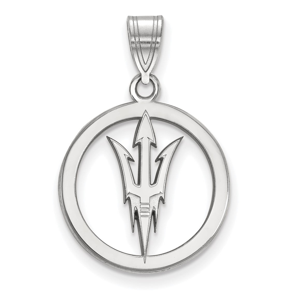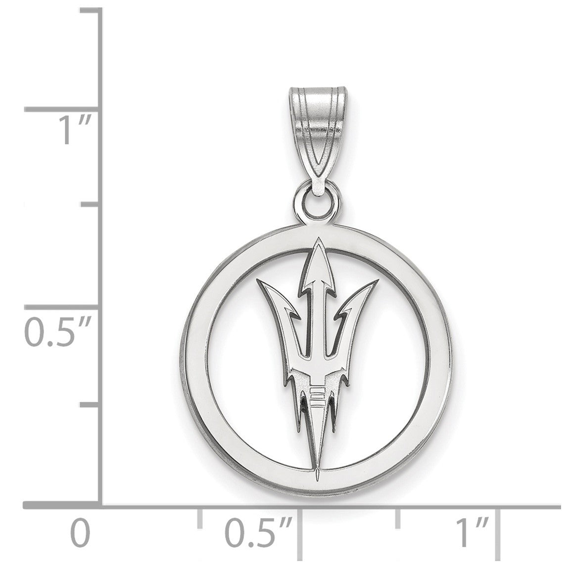 Sterling Silver Rhodium-plated LogoArt Arizona State University Pitchfork Medium Circle Pendant