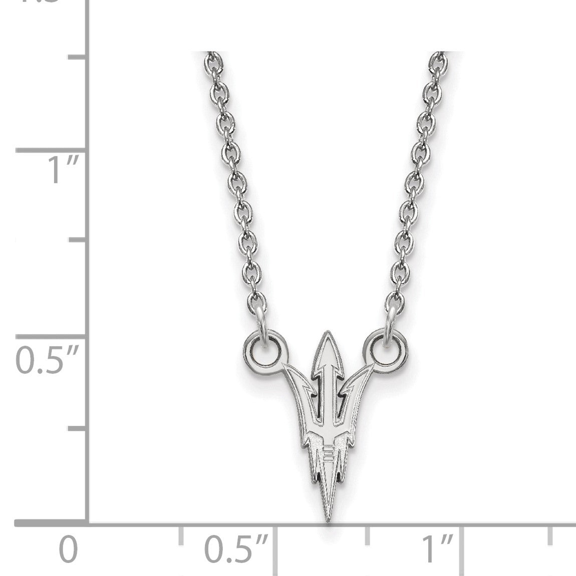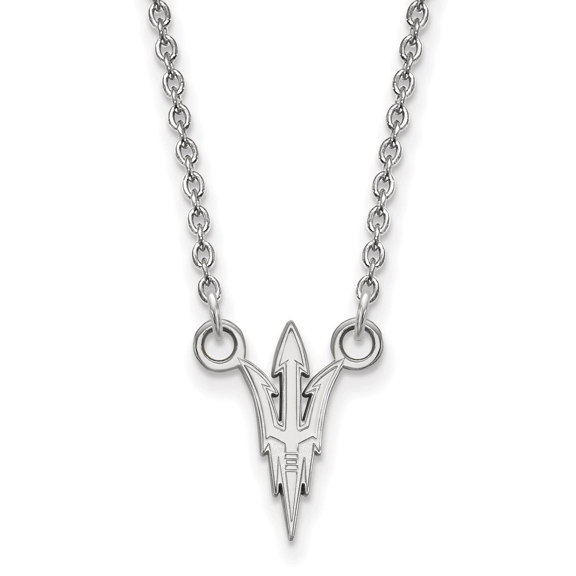 Sterling Silver Rhodium-plated LogoArt Arizona State University Pitchfork Small Pendant 18 inch Necklace