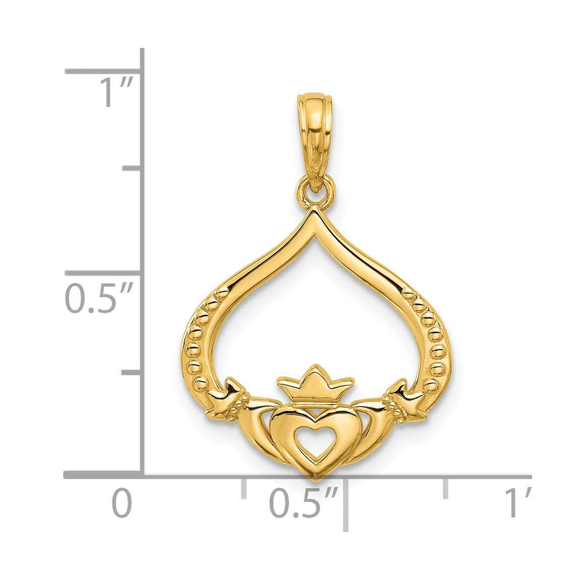 14K Yellow Gold Polished Claddagh Pendant D5574
