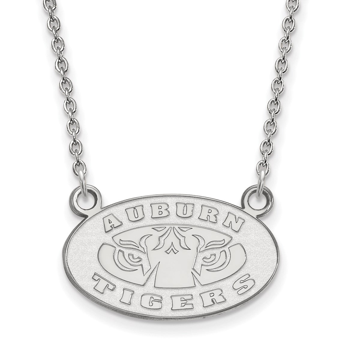 10k White Gold LogoArt Auburn Tigers Small Pendant 18 inch Necklace