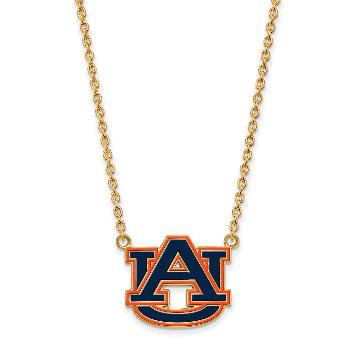 Sterling Silver Gold-plated LogoArt Auburn University Large Enameled Pendant 18 inch Necklace