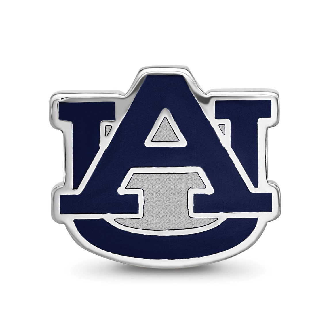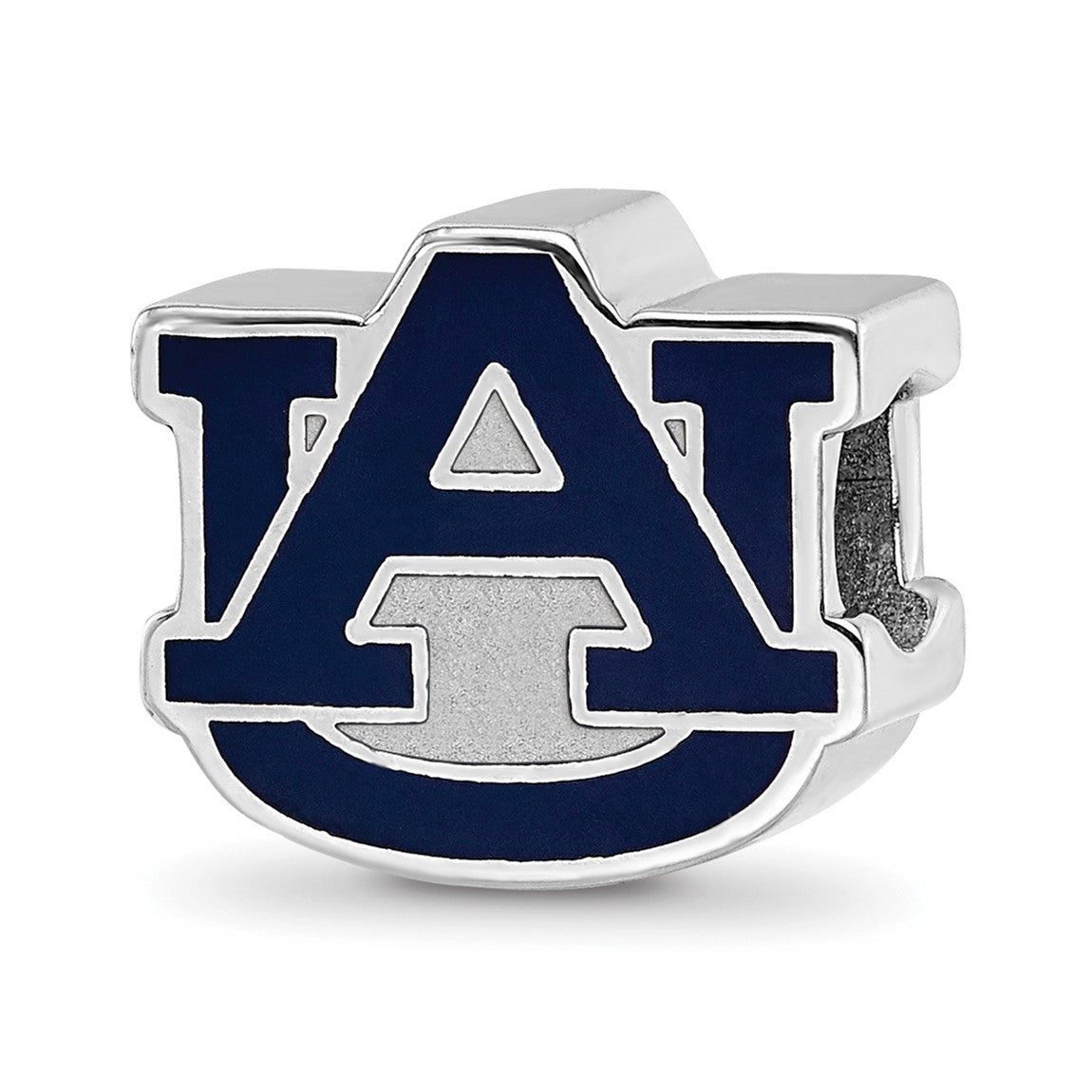 Sterling Silver Rhodium-plated LogoArt Auburn University A-U Enameled Logo Bead