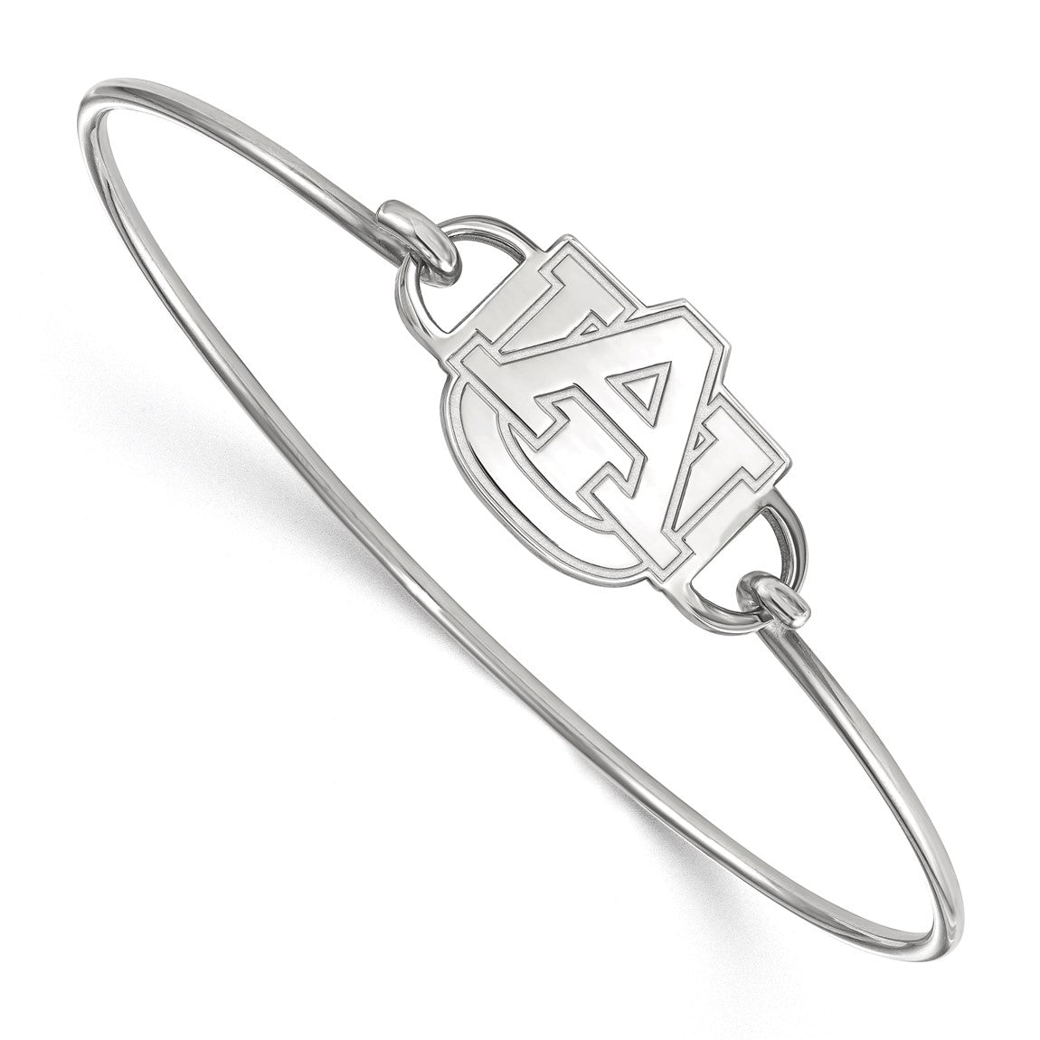 Sterling Silver Rhodium-plated LogoArt Auburn University A-U Medium Center 7 inch Wire Bangle Bracelet