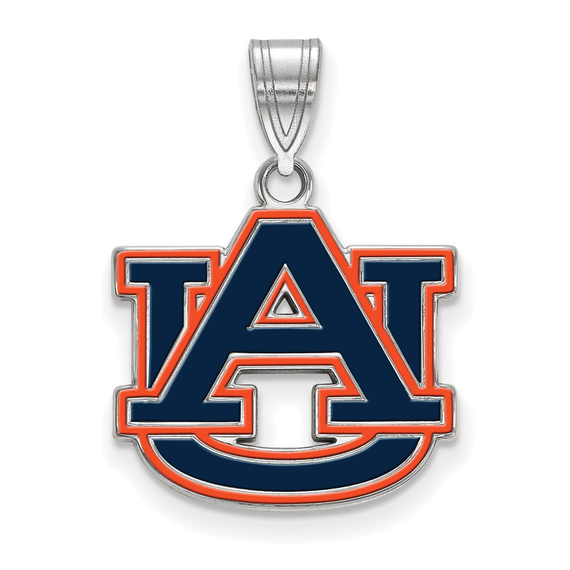 Sterling Silver Rhodium-plated LogoArt Auburn University A-U Medium Enameled Pendant
