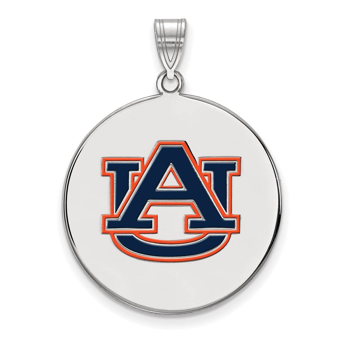 Sterling Silver Rhodium-plated LogoArt Auburn University Extra Large Enameled Disc Pendant