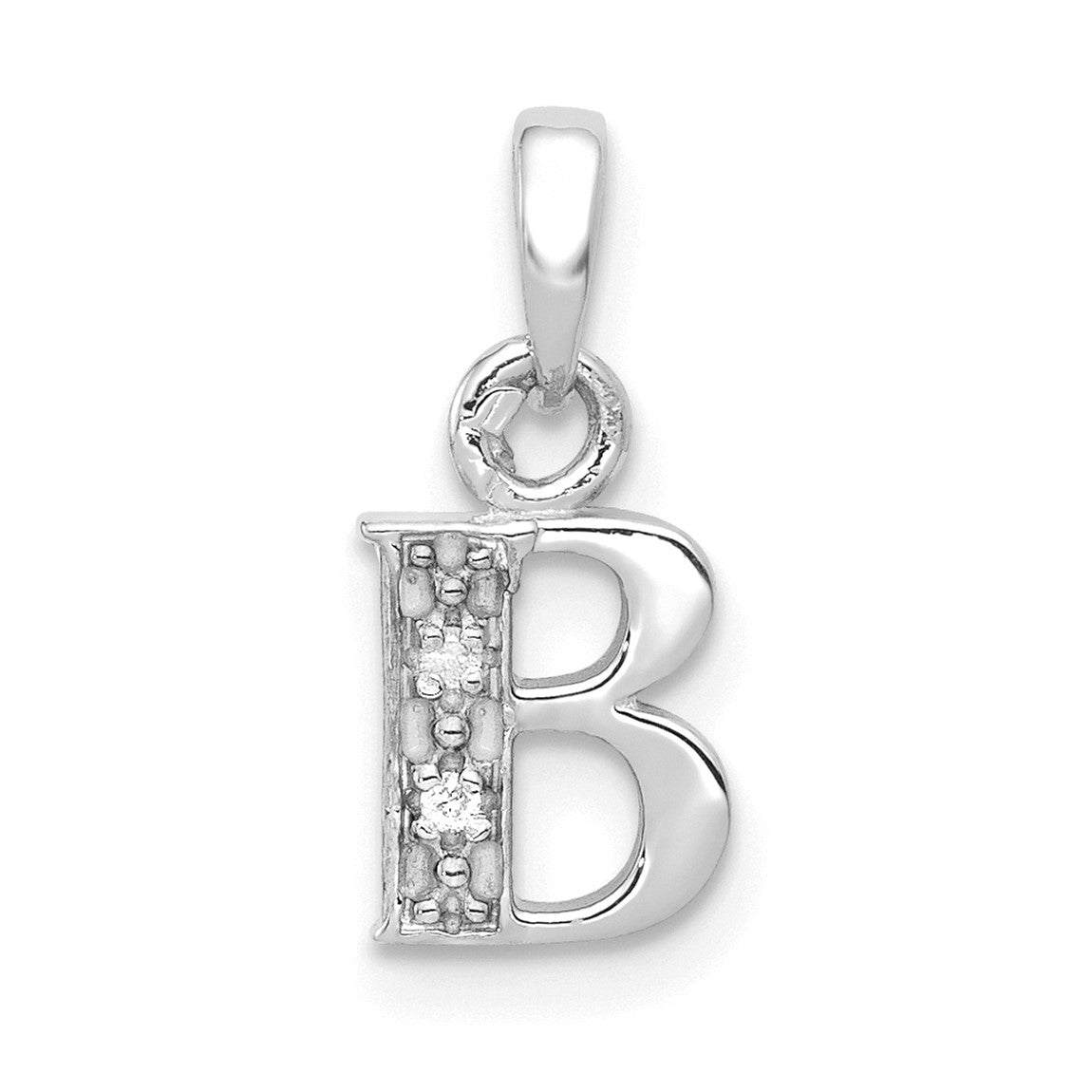 14k White Gold with Rhodium Diamond Letter B Initial Pendant