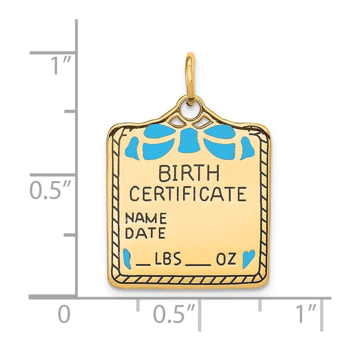 14k Yellow Gold Enameled Blue Engravable Birth Certificate Charm A0364/B
