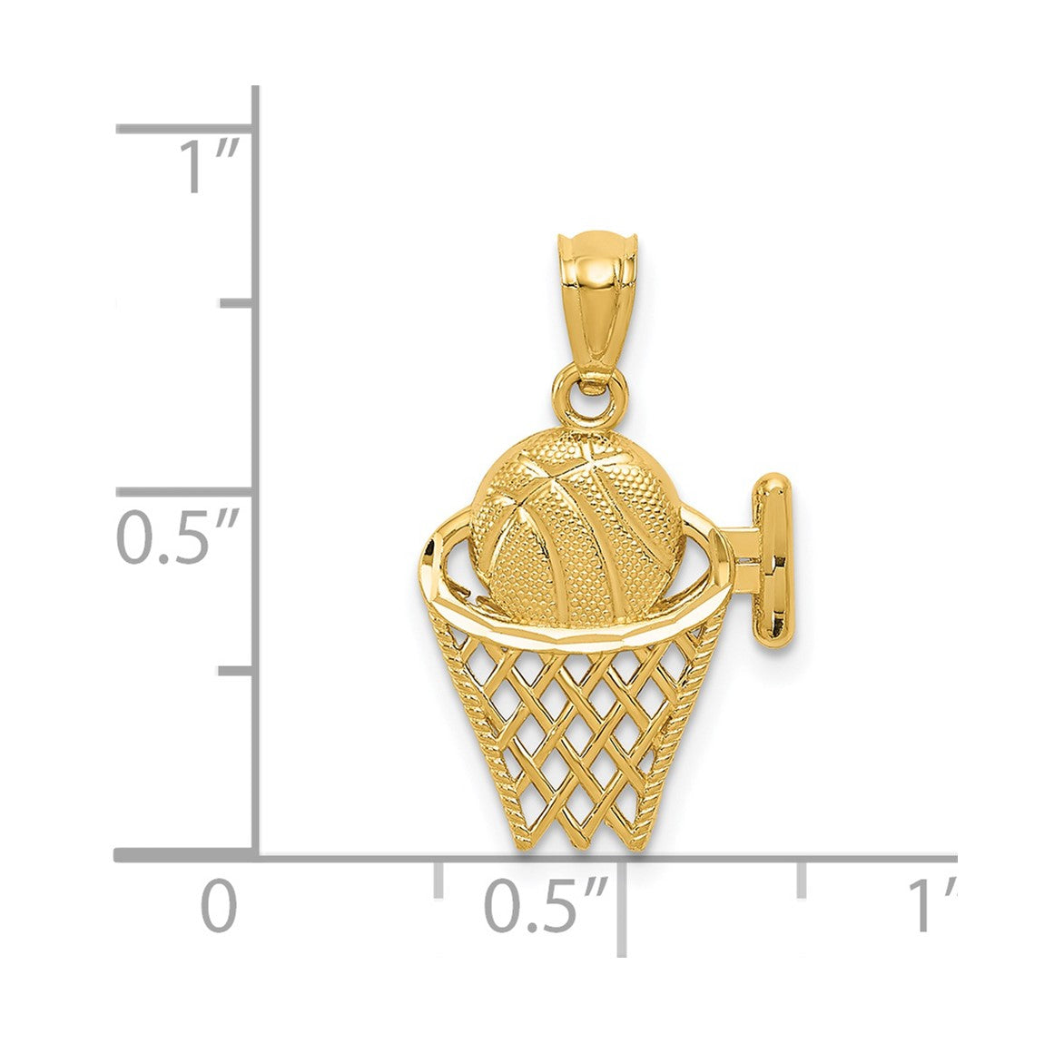 14k Yellow Gold Basketball In The Net Pendant