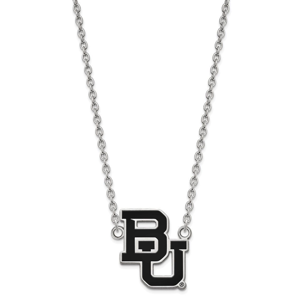 Sterling Silver Rhodium-plated LogoArt Baylor University Bears Large Enameled Pendant 18 inch Necklace