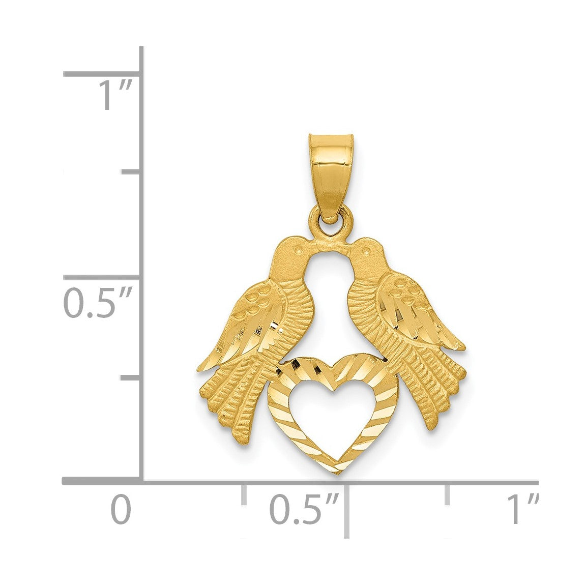14k Yellow Gold Polished Diamond-cut Love Birds w/Heart Pendant