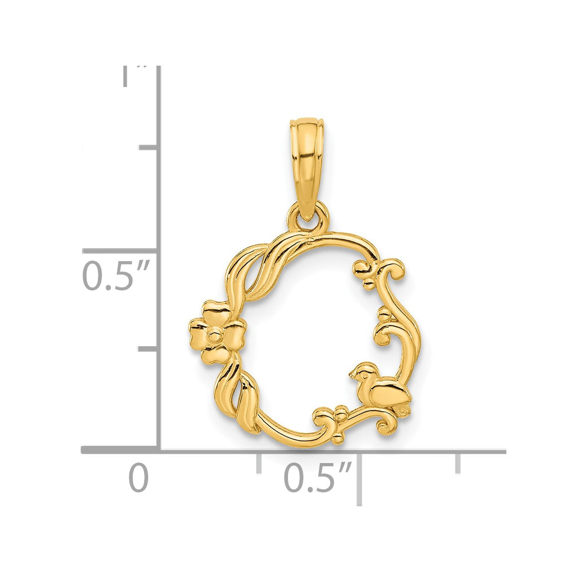 14K Yellow Gold Polished Floral with Bird Circle Pendant