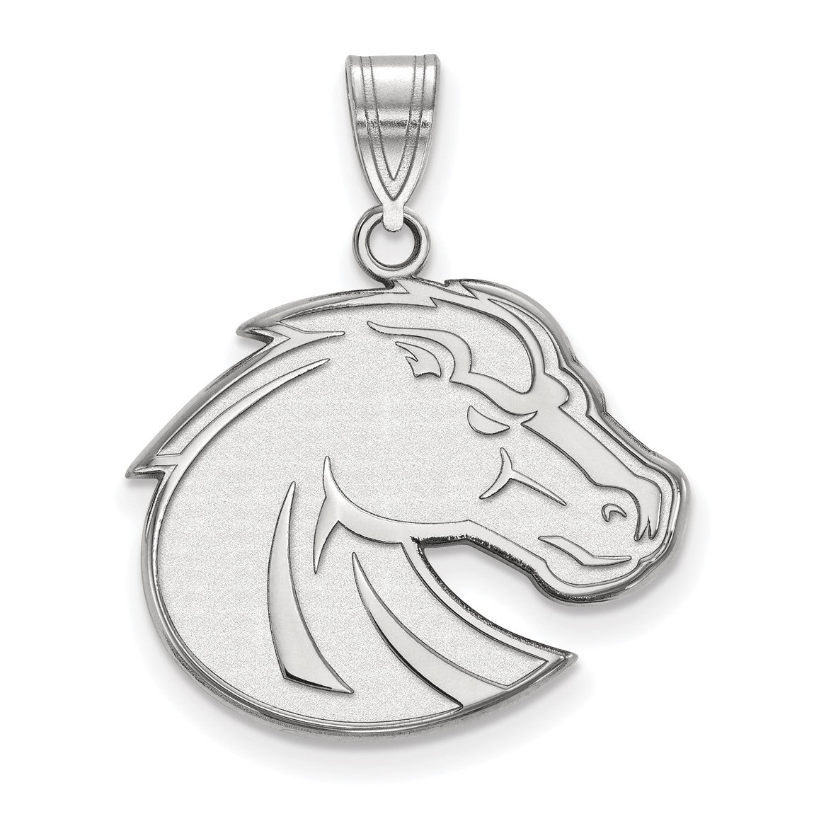 Sterling Silver Rhodium-plated LogoArt Boise State University Bronco Large Pendant