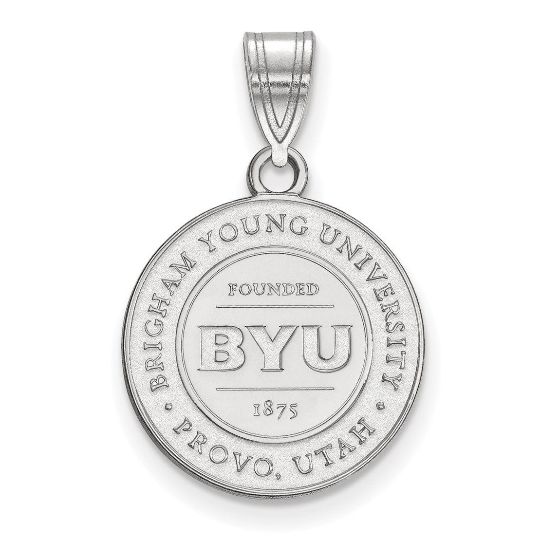 Sterling Silver Rhodium-plated LogoArt Brigham Young University Medium Crest Pendant