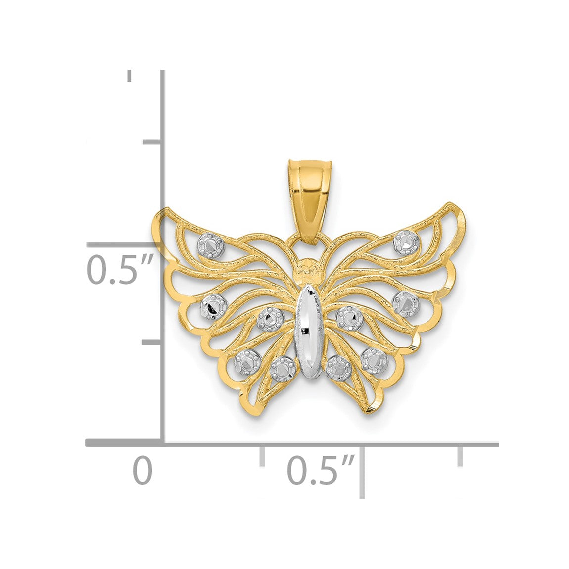 10k Yellow Gold w/ Rhodium Butterfly Pendant 10C1006