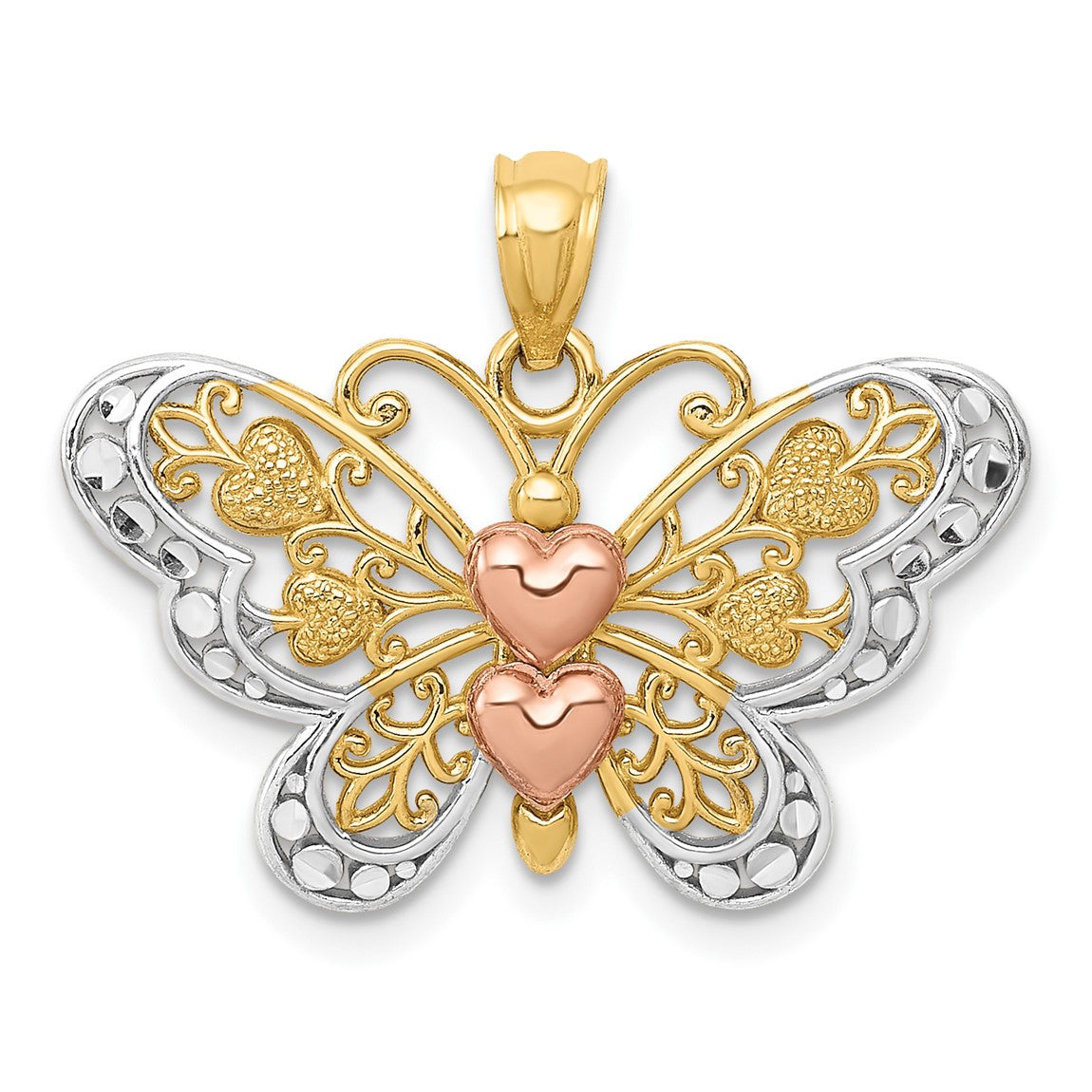 14k Yellow Gold & Rhodium Butterfly Pendant D4201