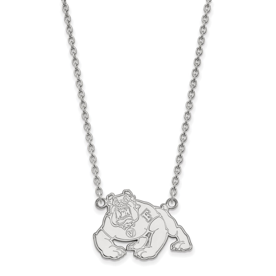 Sterling Silver Rhodium-plated LogoArt California State University Fresno Bulldog Large Pendant 18 inch Necklace
