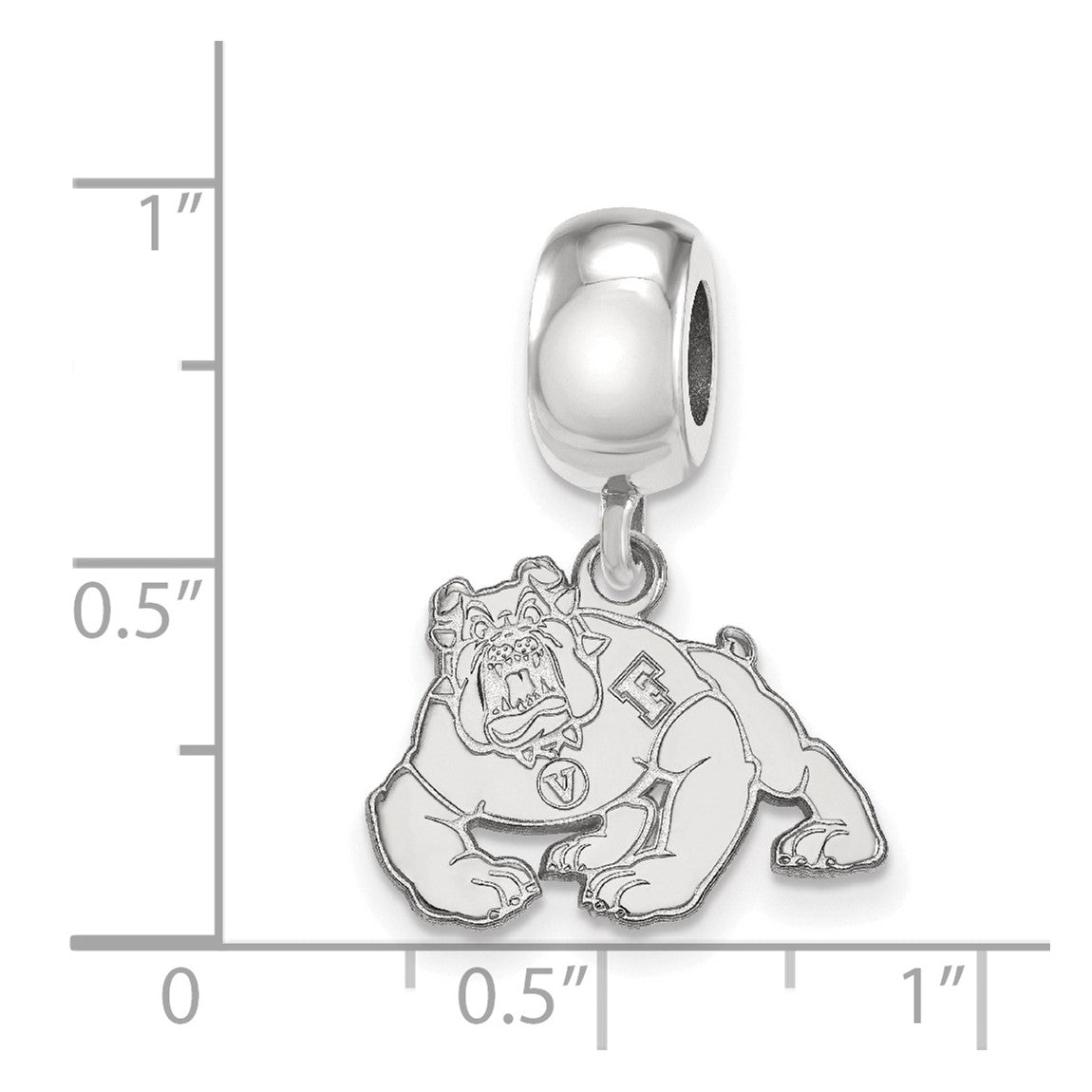 Sterling Silver Rhodium-plated LogoArt California State University Fresno Bulldog Small Dangle Bead Charm