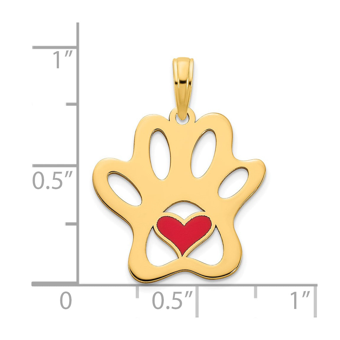 14k Yellow Gold Epoxy Paw Print with Heart Pendant