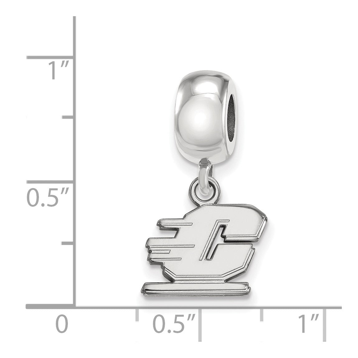 Sterling Silver Rhodium-plated LogoArt Central Michigan University Letter C Extra Small Dangle Bead Charm