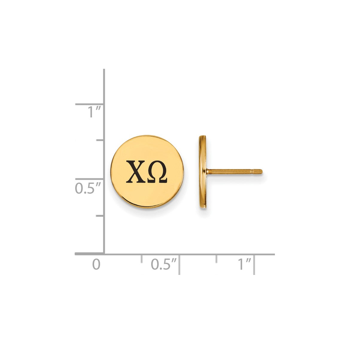 Sterling Silver Gold-plated LogoArt Chi Omega Sorority Greek Letters Black Enamel Post Earrings