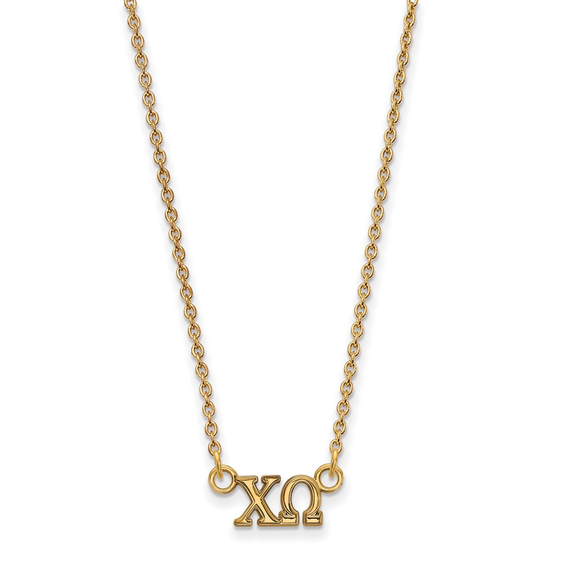 Sterling Silver Gold-plated LogoArt Chi Omega Sorority Greek Letters Extra Small Pendant 18 inch Necklace