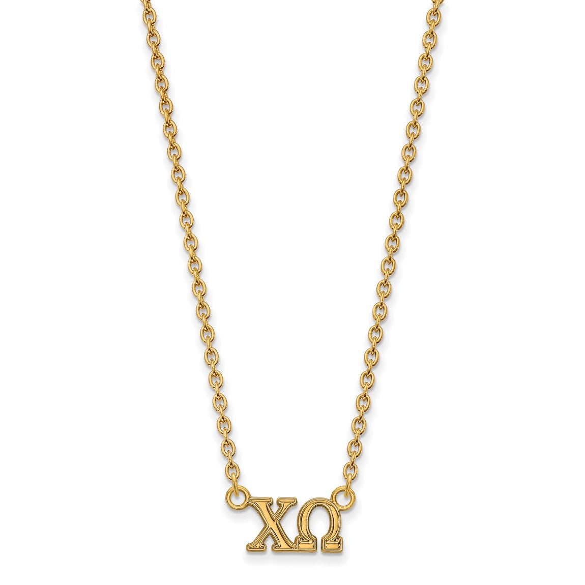Sterling Silver Gold-plated LogoArt Chi Omega Sorority Greek Letters Medium Pendant 18 inch Necklace